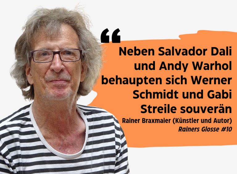 Dass man daraus eine sehr gute Ausstellung machen kann, wenn man geeignete Werke zur Hand hat, zeigt die großzügige Inszenierung im Kulturforum beispielgebend. Und neben den Werken berühmter Zeitgenossen wie Andy Warhol, Fernand Botero oder Salvador Dali behaupten sich Gabi Streile und Werner Schmidt, die als einzige Künstler der Region in der Sammlung vertreten sind, souverän (bis 26. April; geöffnet Mittwoch – Freitag 14-18 Uhr, Samstag und Sonntag 11-17 Uhr).